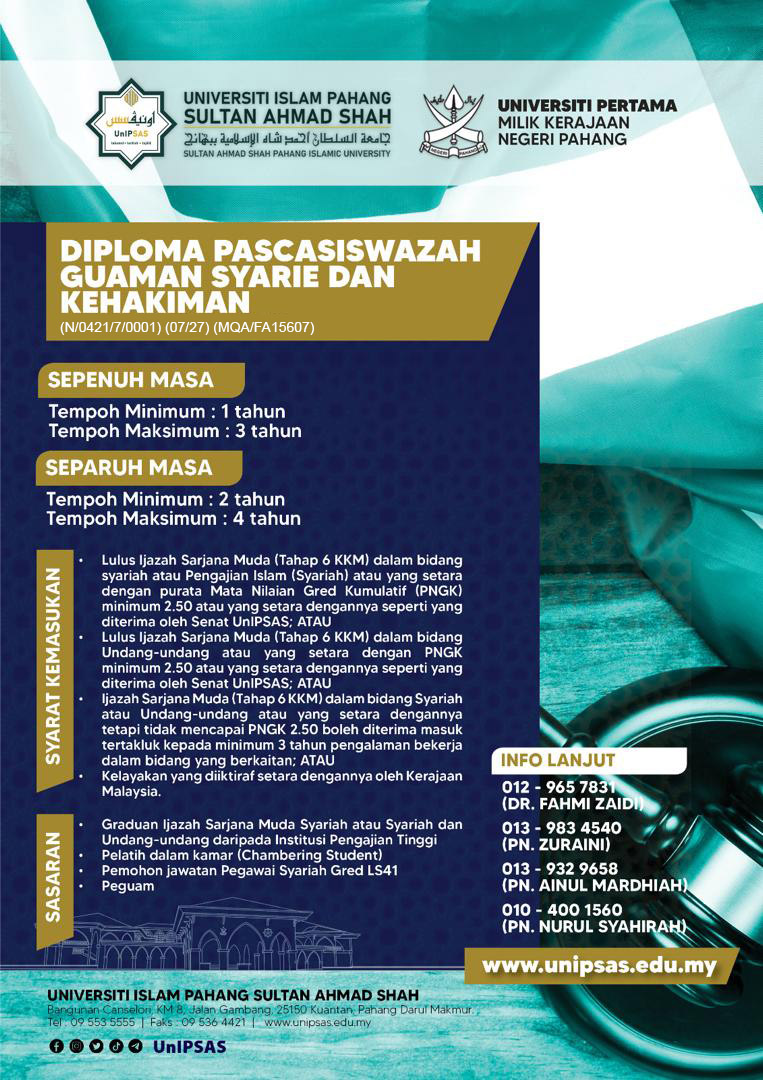 DIPLOMA PASCASISWAZAH GUAMAN SYARIE DAN KEHAKIMAN (N/0421/7/0001) (07/27) (FA15607)